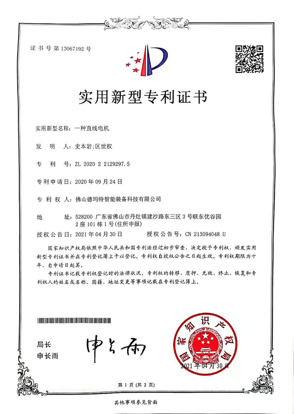 徳玛特智能坚持技术创新,优化行业应用的发展方向,荣获专精特新“小巨人”企业、高新技术企业、佛山高新技术进步奖、守合同重信用企业等荣誉。