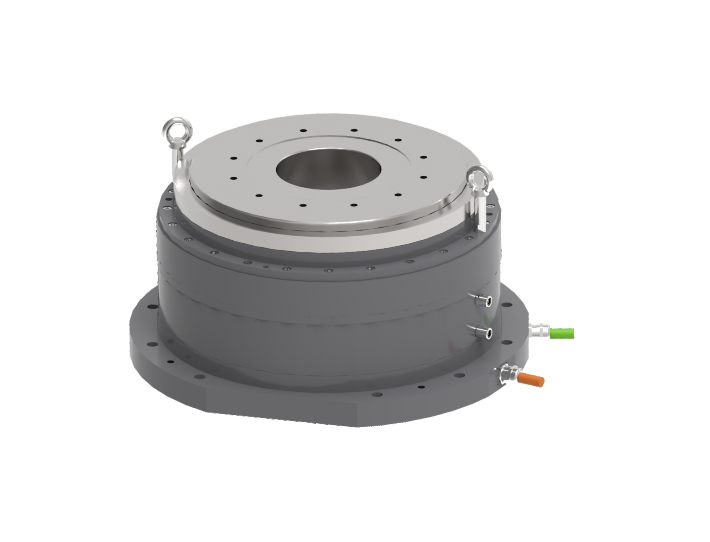 数控立式直驱转台采用了高动态响应直驱电机,消除了传动部件带来的磨损、间隙、弹性、滞后等问题。内置空压强力刹车系统,运行更安全。主要应用于加工中心等机床作为立式第四轴使用,或作为多工位连续加工分度转台。