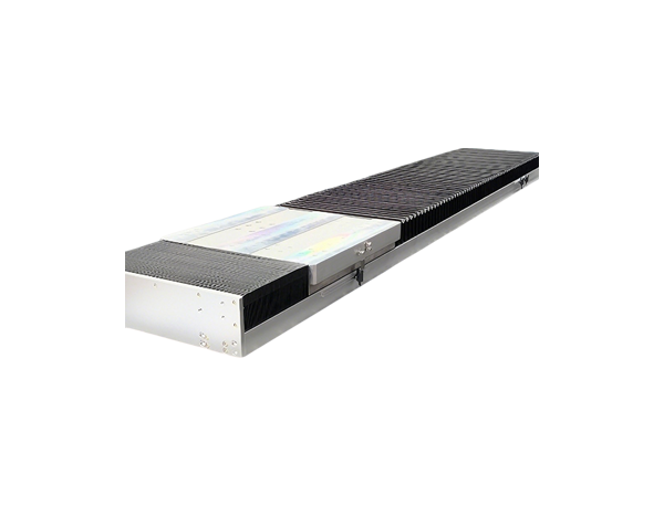 风琴罩式封闭式直线模组,宽370mm,行程1.4米;最大推力1610.5N;重复精度±1μm,采用0.05μm分辨率绝对值光栅编码器,能在高精度定位场景中直接输出绝对位置、避免累积误差,同时兼顾响应速度与长期稳定性。