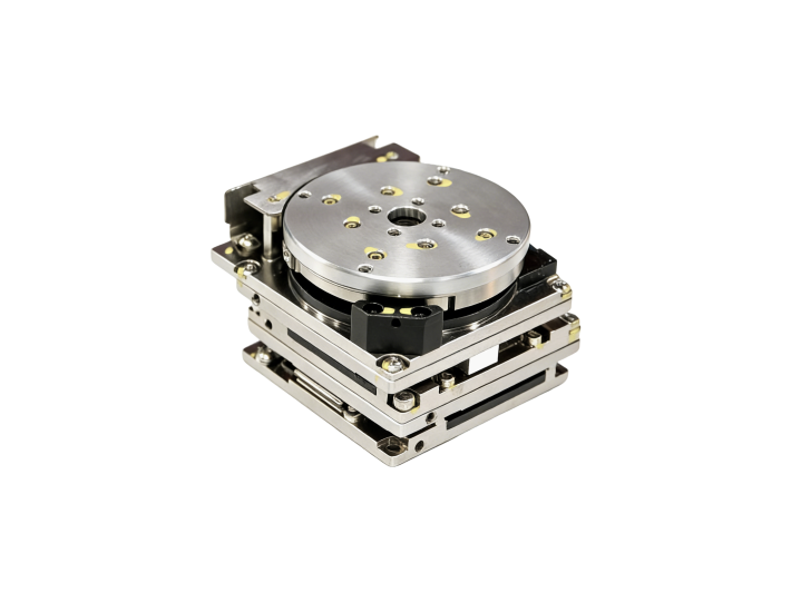 直驱对位纠偏平台XYθ-120尺寸小、精度高、推力大。产品结构紧凑,旋转直径仅为120mm,整机高度仅为111mm,可以在狭小空间内完成精准作业。采用自研高精度编码器以及高精度导轨以确保精度,直线轴重复定位精度可达5μm以内,旋转轴重复定位精度可达4"以内,可以在高精视觉对位系统中完成机械执行部分的各种精细纠偏任务。直线轴最高可提供90N的推力,旋转轴可提供10Nm的推力符合绝大部分纠偏平台需求。